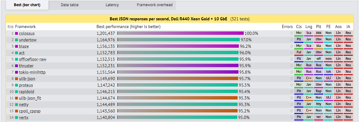 12위에 netty가 위치하고있다. JSON serializtion 기준으로 나온 순위인데 netty는 고성능이라고 하는데 12위? 근데 순위를 자세히 살펴볼 필요있다. 맨위에 2위에 undertow가 보인다. undertow 기본 netty 기반으로 동작을 하고 있다. 결국은 netty 를 응용해서 만들어진 녀석이라는것이다.