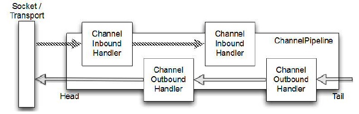 Netty 를 대표하는 컴포넌트이다. I/O 발생시 EventLoop 를 이용하여 task 를 실행한다. 이벤트 방식이라면 기본적인 구조가 아닌가 싶다. Eventloop 에서 pipe line 을 사용할경우 일종에 이벤트 핸들러 역할을 하게 된다. pipe line 에서는 이벤트 루프가 발생시킨 이벤트를 Inbound 핸들러에게 전달하게 되고 그 이벤트의 outbound 이벤트를 outbound 핸들러에게 다시 전달하게 된다. 그리고 최종적으로 I/O 처리 마무리는 EventLoop가 담당하게 된다.
