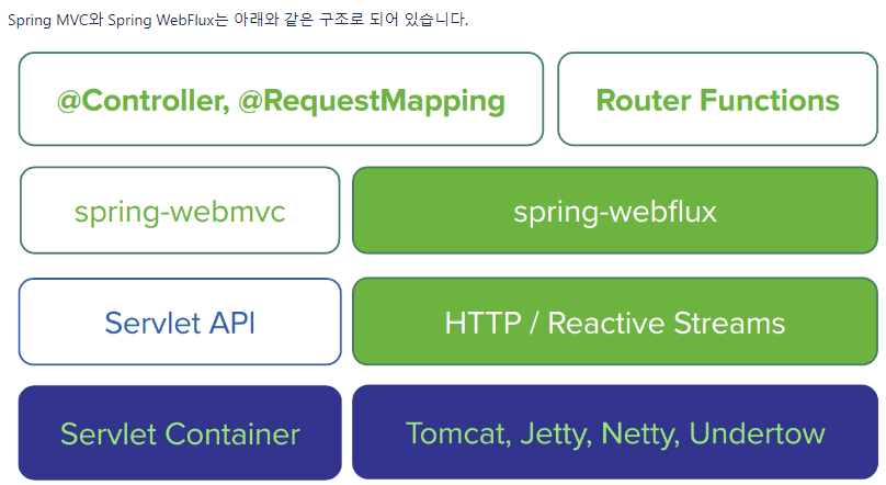 <dependency> <groupId>org.springframework.boot</groupId> <artifactId>spring-boot-starter-webflux</artifactId> </dependency> <dependency> <groupId>org.springframework.boot</groupId> <artifactId>spring-boot-starter-actuator</artifactId> </dependency> <dependency> <groupId>io.projectreactor</groupId> <artifactId>reactor-test</artifactId> </dependency>이 세가지를 추가한 이유는 webflux 를 사용하기 위해서이다. webflux 는 스프링프레임워크 5에서 도입된 모듈로 웹요청을 reactive 하게 다루는데 초점이 맞춰진 모듈이다.