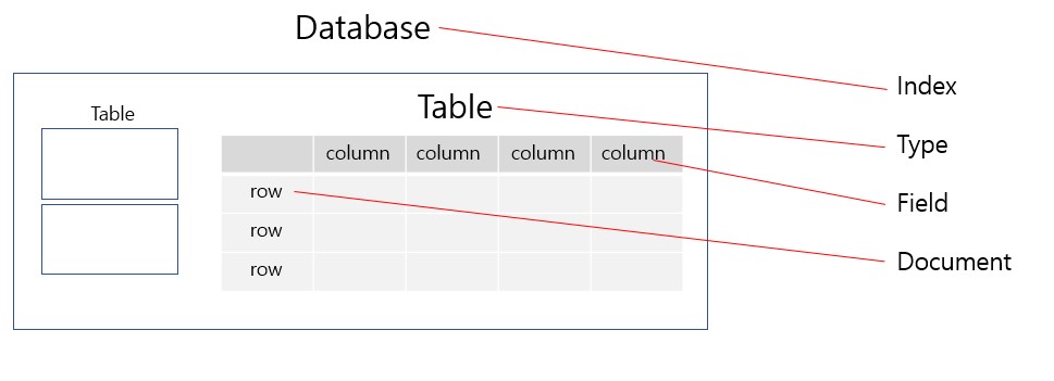 Elastic Search RDBMS INDEX DATA BASE TYPE TABLE DOCUMENT ROW FIELD COLUMN MAPPING SCHEMA