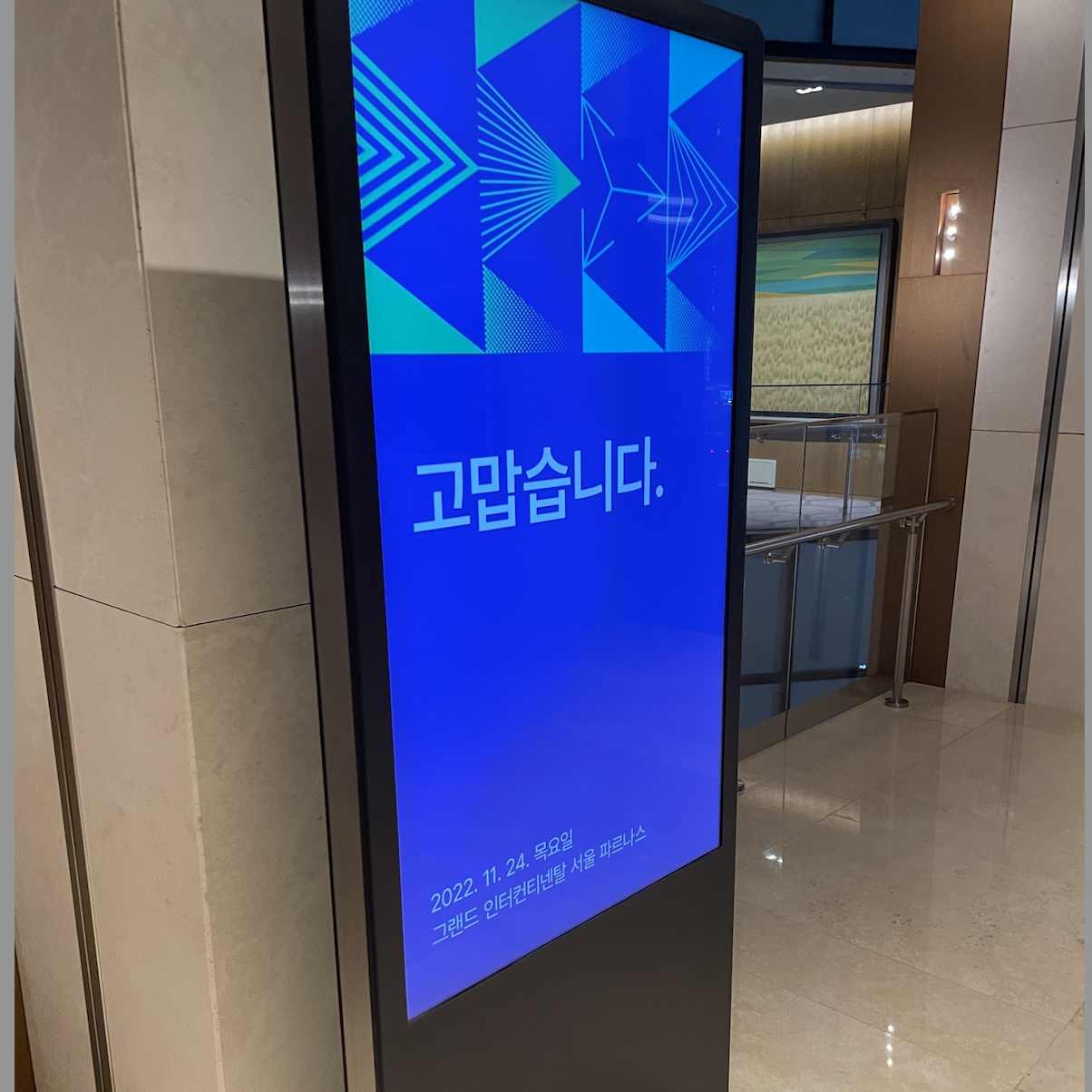 모든 세션이 종료되고 집에 가려는 엘리베이터 앞에 있던 디스플레이를 보면서 순간 이 모습을 남기고 싶었다. 와주셔서 감사하고 고맙다는 말일 것이고 , 실제로 NHN 은 매년 이 컨퍼런스를 할 때 NHN 채용도 같이 홍보를 했다. 결국엔 극단적으로 회사의 홍보를 위한 자리인 것 같다.