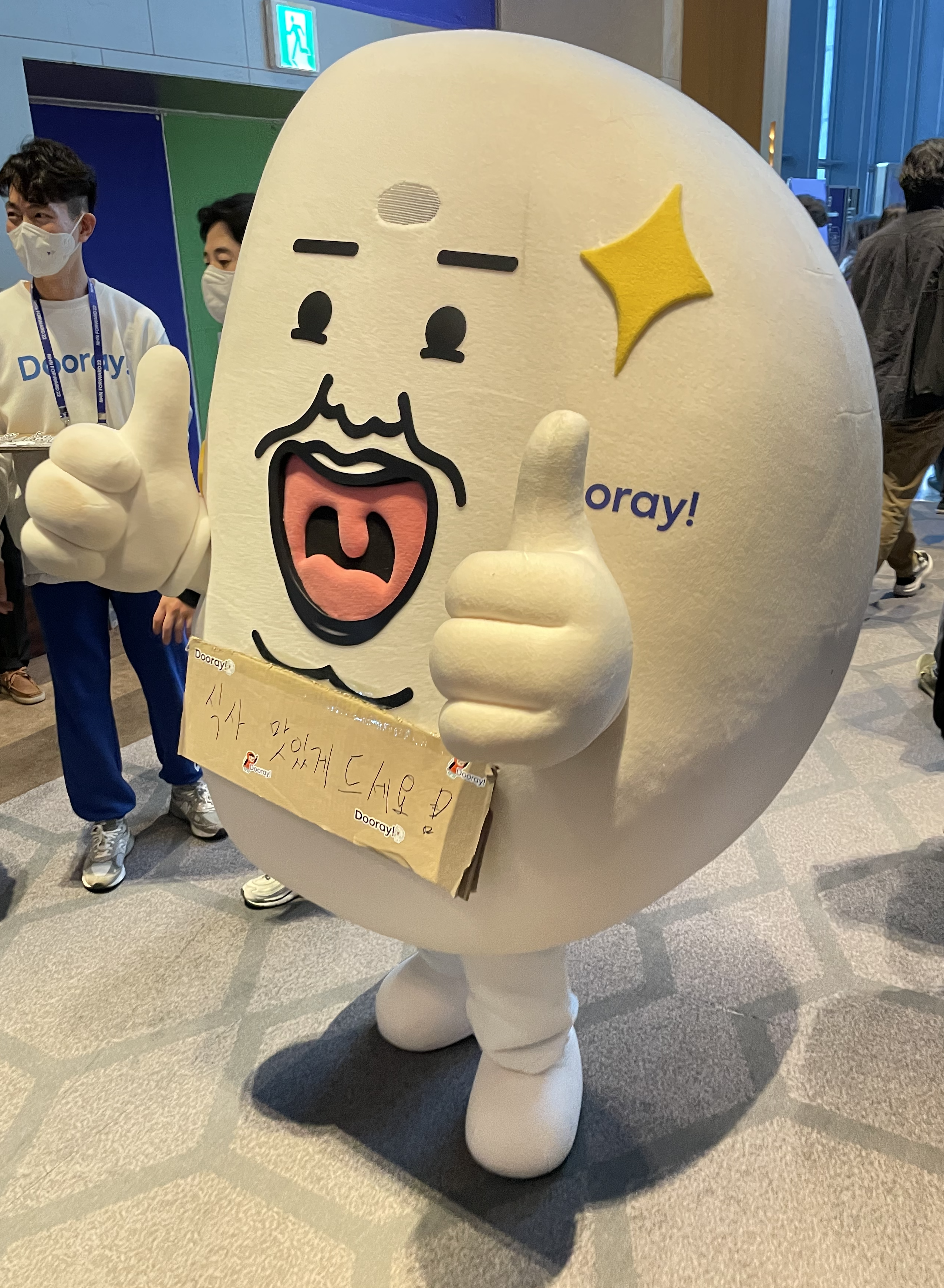 19년도와 달라진 점은 사진은 사람이 너무 많아서 제대로 찍지 못했는데 와서 초대 문자를 보여주거나 하면 팔찌를 챙겨주던 것으로 기억한다 그리고 저런 출입증도 전부 사람이 직접 해줬었는데 와보니 신문명이 있었다. 문자의 QR 코드를 찍으면 명찰이 자동으로 출력되는 기계가 도입이 돼있었다. 덕분에 출입증 수령하는데 굉장히 편했다.